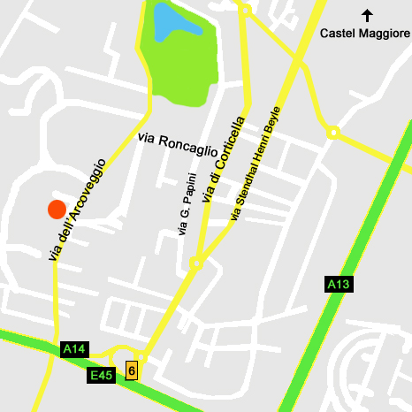 Uscita tangenziale n.6. Proseguire per circa 1 Km su via di Corticella in direzione Castel Maggiore. Svoltare in via Roncaglio e, al termine della strada, svoltare a sinistra su via dell’Arcoveggio. Lo studio è dopo circa 300 mt. sulla destra.